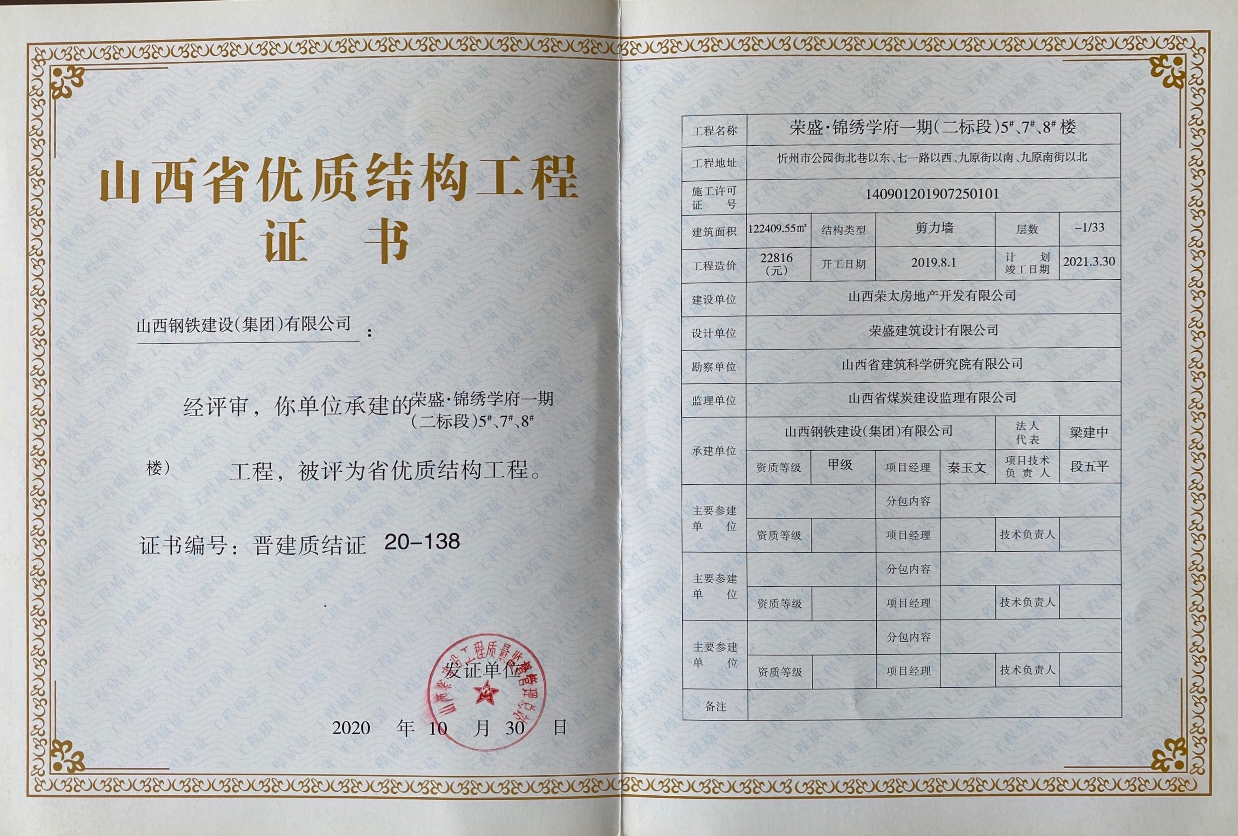 省優(yōu)質結構工程榮盛